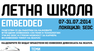 Seavus Education and Development Center (SEDC) организира летна школа за вгнездени (embedded) системи и ги поканува сите заинтересирани да аплицираат. Летната школа ќе се одржи во период од 7 јули до 31 јули 2014 година. Право на учество имаат студенти, дипломирани инженери и професионалци од слични занимања и сите заинтересирани. Најдобрите 10 кандидати на влезното тестирање ќе добијат 100% стипендија од Seavus едукативниот и развоен центар и со тоа ќе обезбедат бесплатно учество на школата.